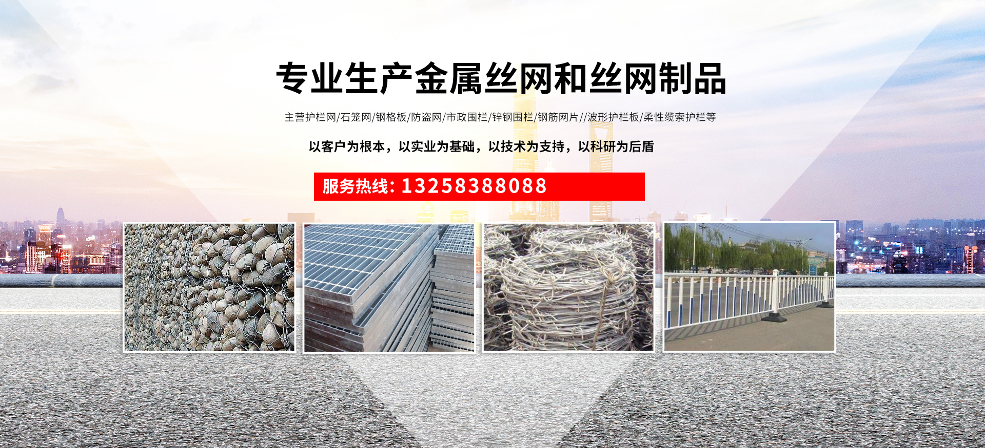 成都宏旭金屬絲網(wǎng)制造有限公司主營護(hù)欄網(wǎng)系列、石籠網(wǎng)系列、鋼格板、防盜網(wǎng)、市政圍欄、鋅鋼圍欄、鋼筋網(wǎng)片、聲屏障系列、波形護(hù)欄板、柔性纜索護(hù)欄、SNS邊坡防護(hù)網(wǎng)等其他絲網(wǎng)類產(chǎn)品。特殊規(guī)格可加工定做,也可根據(jù)客戶來圖來樣定做。自創(chuàng)業(yè)以來,公司一直堅持市場為導(dǎo)向,以客戶為根本,以實(shí)業(yè)為基礎(chǔ),以技術(shù)為支持,以科研為后盾,集科研、生產(chǎn)、經(jīng)營為一體,不斷研制開發(fā)新產(chǎn)品,開拓市場,走綜合發(fā)展之路。多年來,公司憑借過硬的質(zhì)量,良好的信譽(yù)、優(yōu)質(zhì)的服務(wù)、合理的價格,贏得了市場和商家的一致好評。